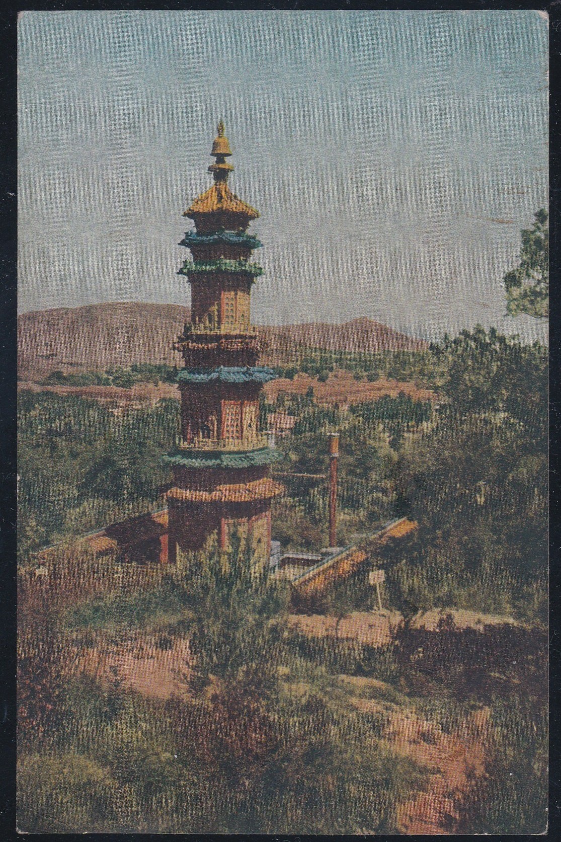 Postkarte (Pagode) frankiert mit vier Briefmarken aus der Serie „Werktätige“ (Michel Nr. 298 und 304 (3x)) zu insgesamt 61 Fen. Verwendet am 2.7. 1956 in Peking (Stempeldatum 4.7.56). Gesendet nach Szeged/Ungarn.