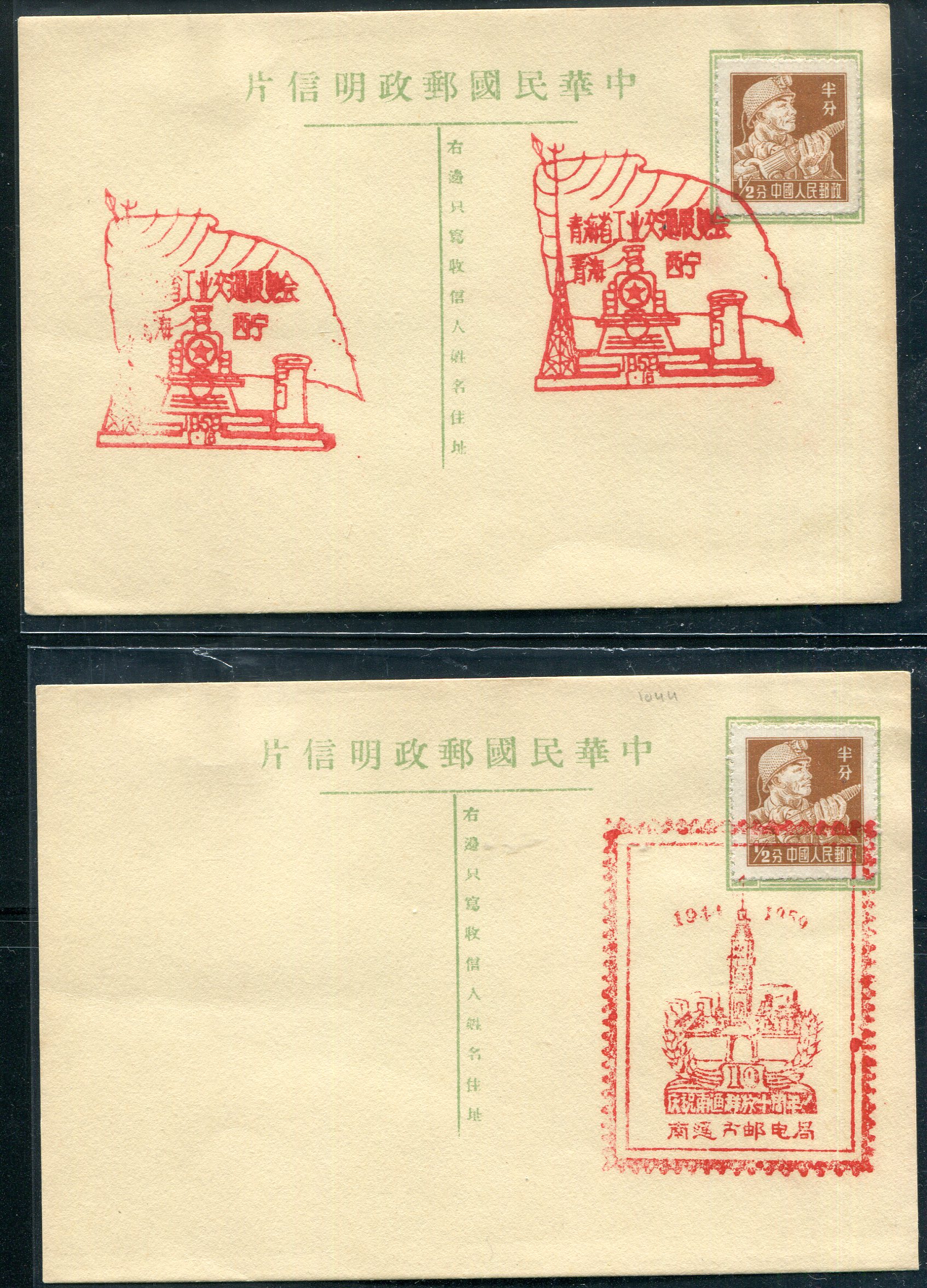 VR China, 1958/1959, 4 Ganzsachen mit 1/2 Sen auf Sun Yat-Sen, mit Sonderstempel